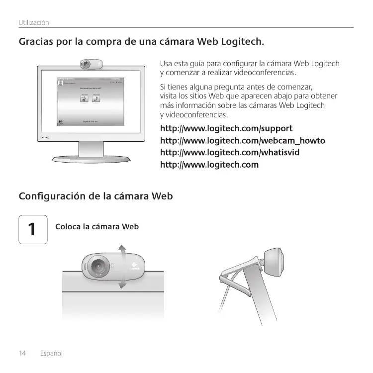 Usa esta guía para configurar la cámara Web Logitech y comenzar a realizar videoconferencias. Si tienes alguna pregunta antes de comenzar, visita los sitios Web que aparecen abajo para obtener más información sobre las cámaras Web Logitech y videoconferencias.
