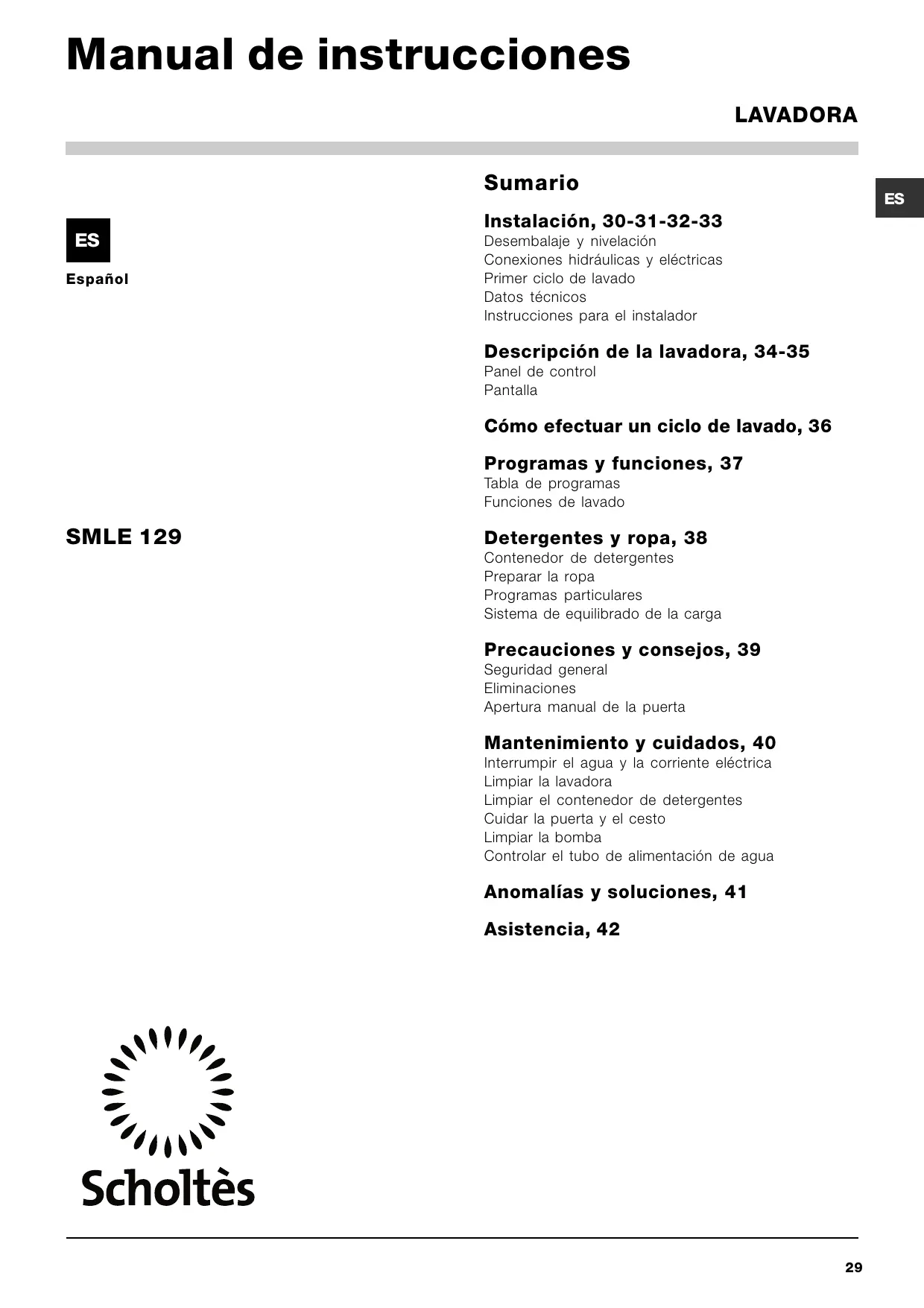 SMLE 129 - Lavadora SCHOLTES - Manual de uso y guía de instrucciones gratis