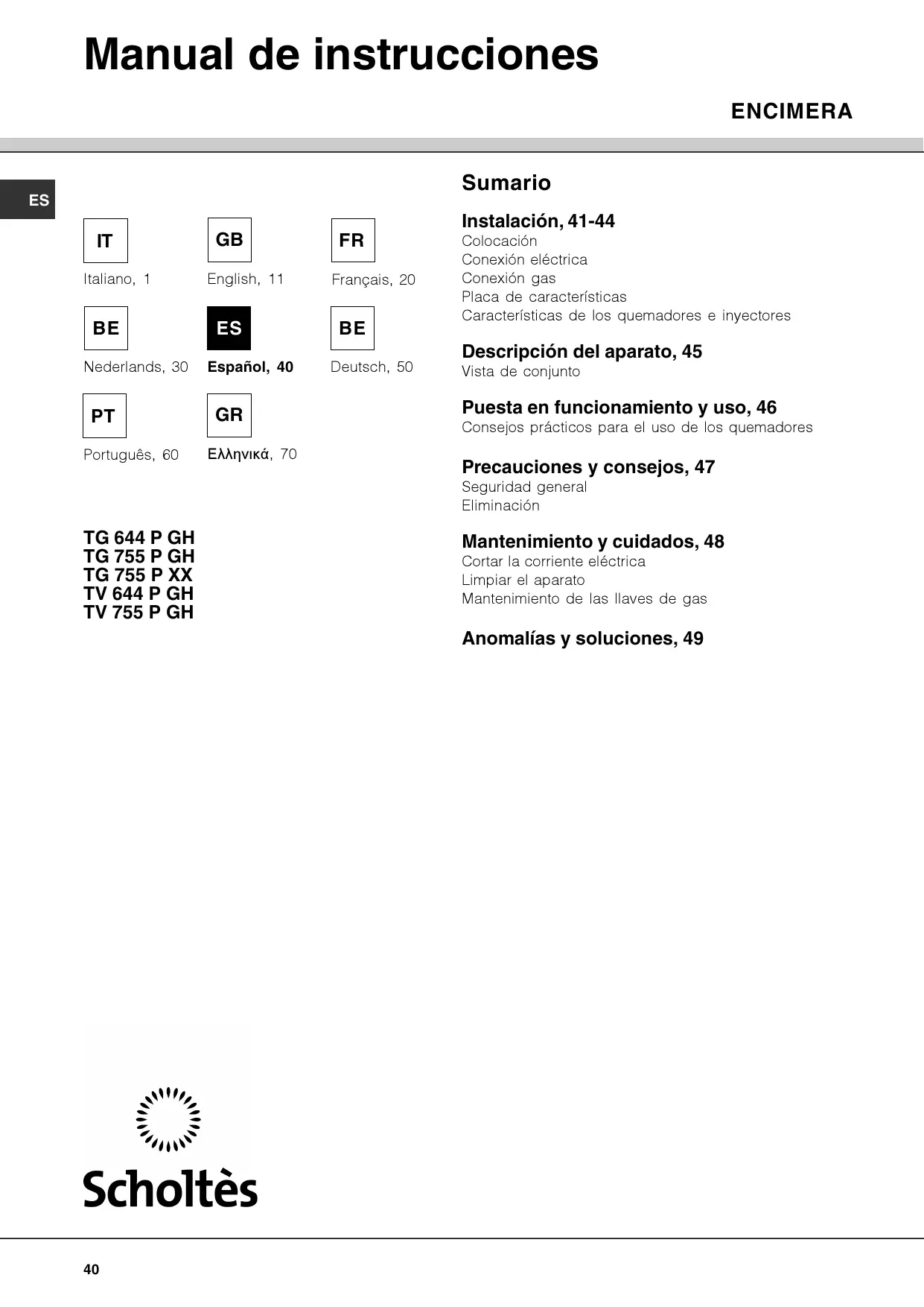 TG 644 P GH - Cocina SCHOLTES - Manual de uso y guía de instrucciones gratis