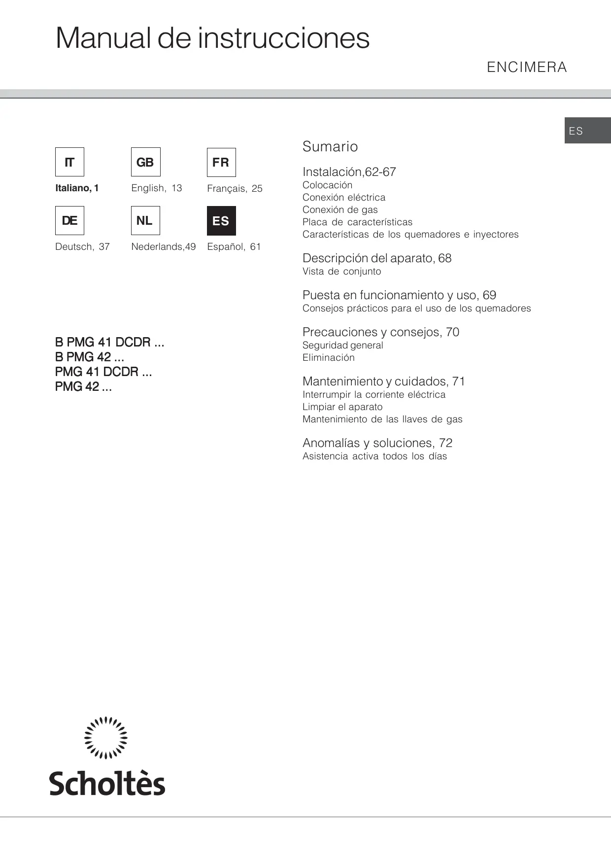 Encuentra gratis el manual del aparato PMG 41 DCDR SF SCHOLTES en formato PDF.