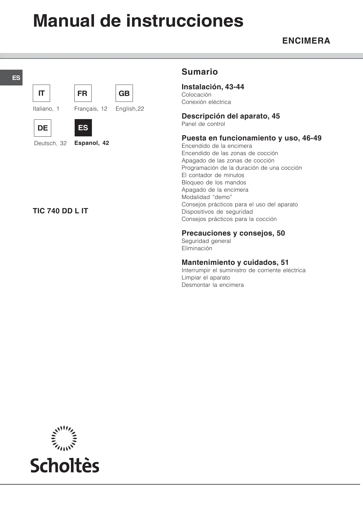 Encuentra gratis el manual del aparato TIC 740 DD L IT SCHOLTES en formato PDF.