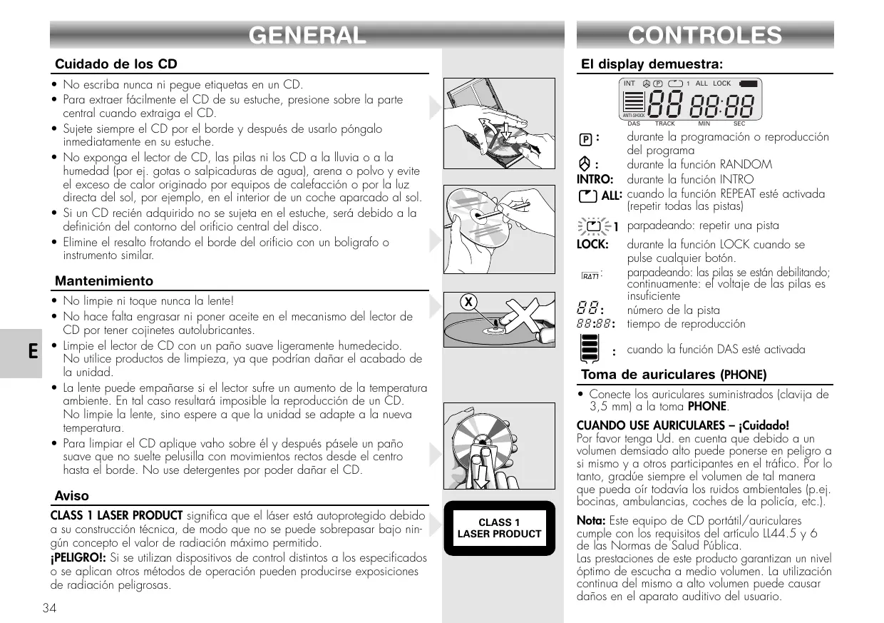 Note: Este equipo de CD portátil/auricuales cumple con los requisitos del articleo LL44.5 y 6 de las Normas de Salud Pública.