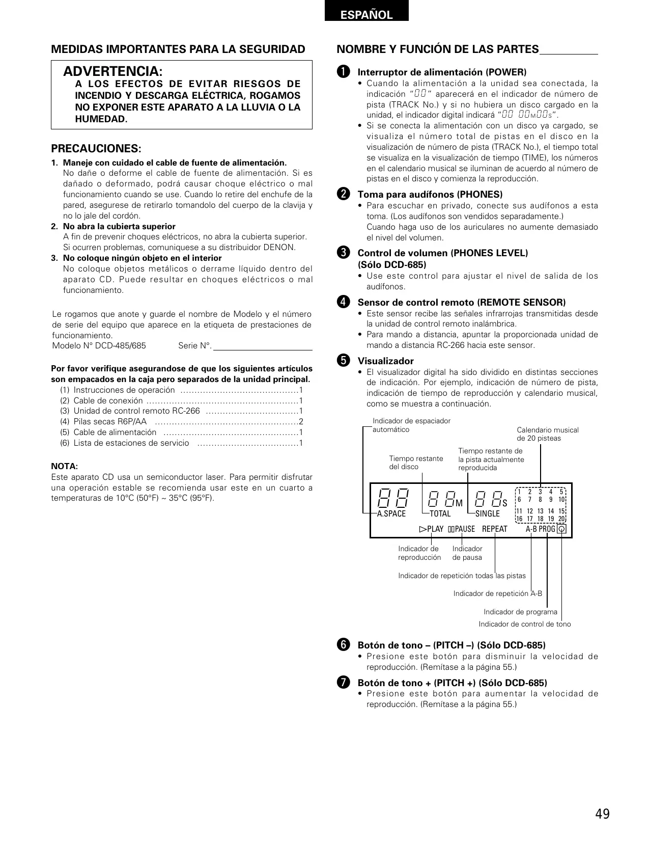 DCD-485 - Reproductor de CD DENON - Manual de uso y guía de instrucciones gratis