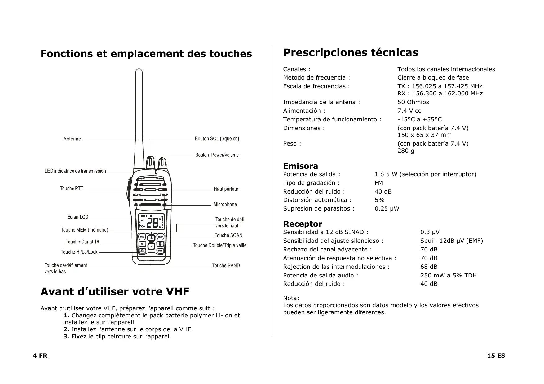 Antes de utiliser su VHF,prepare el aparato como se indica :