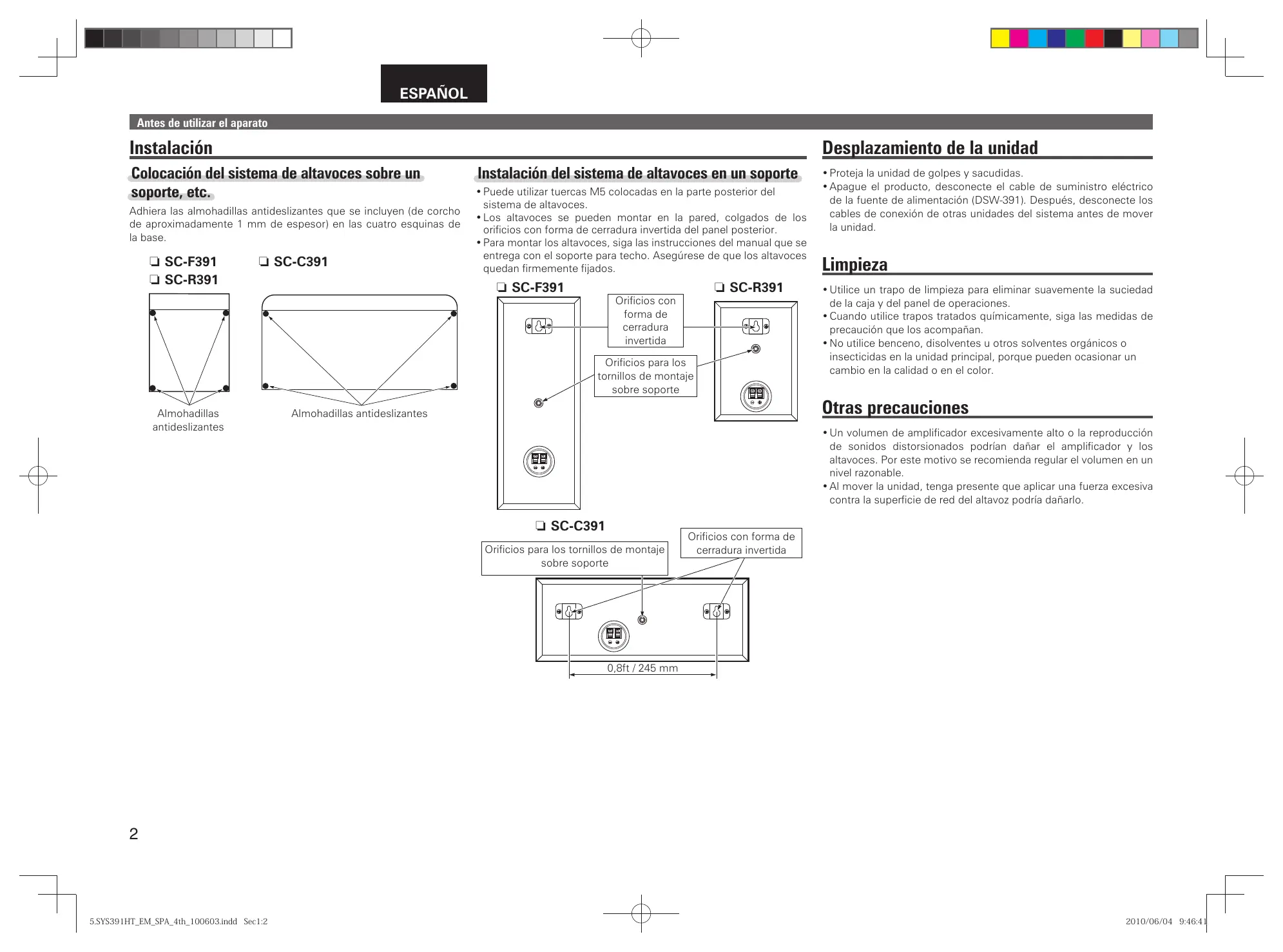Precauciones durante la instalación Sistema de altavoces por centrales SC-C391 ······························································································1