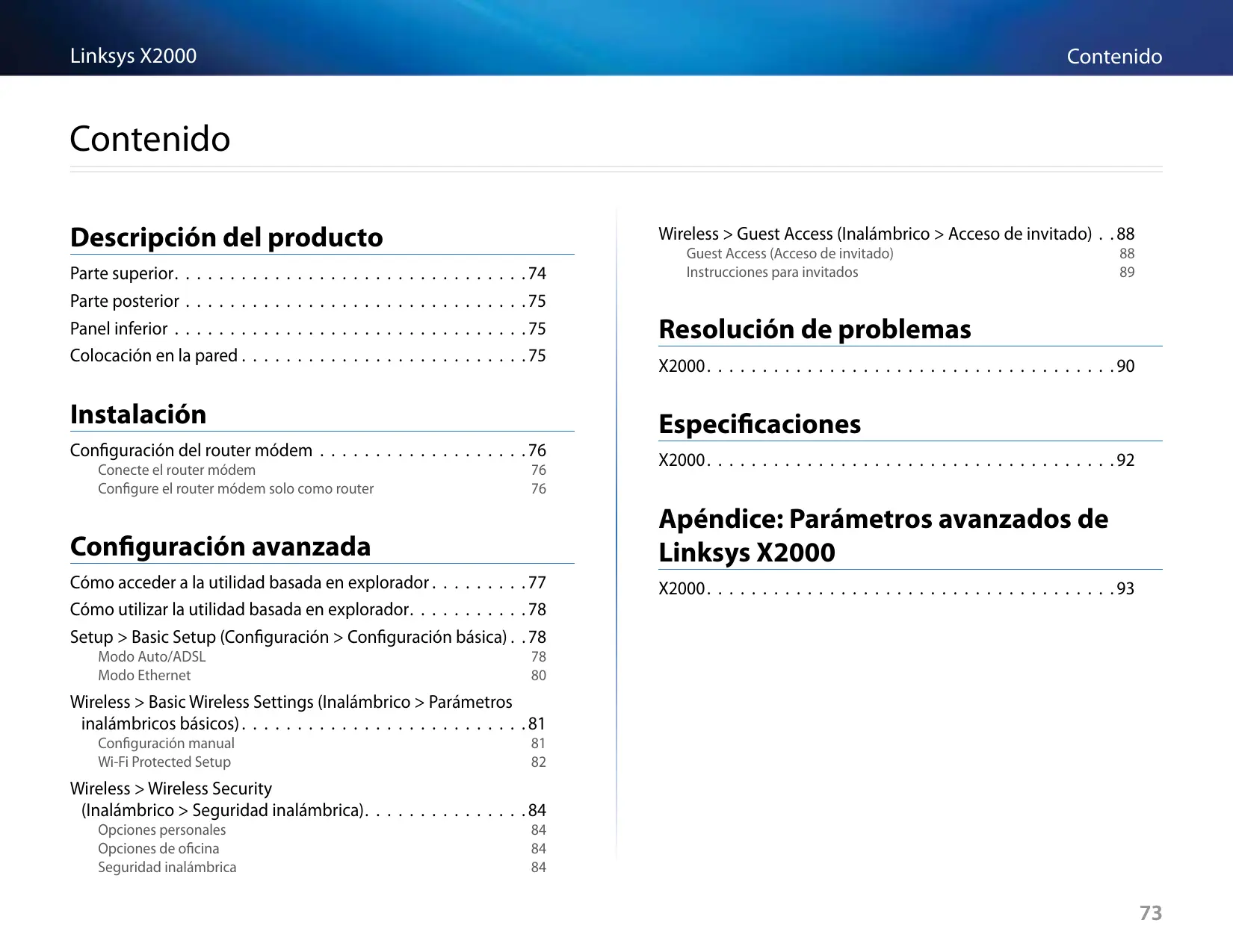 Wireless > Basic Wireless Settings (Inalámbrico > Parámetros inalámbricos básicos) . . . . . . . . . . . . . . . . . . . . . . . . . 81