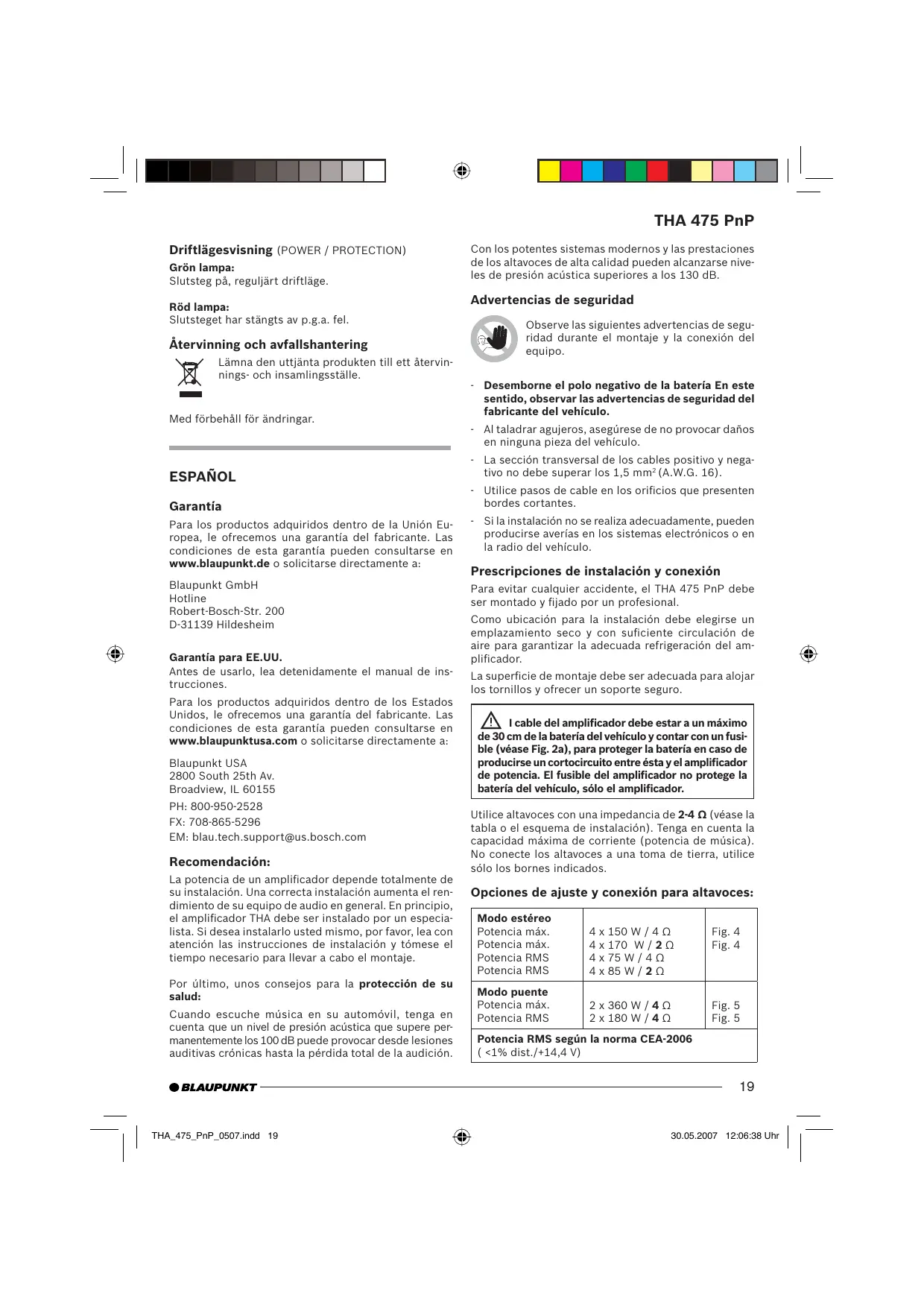 THA 475 PNP - Amplificador de potencia BLAUPUNKT - Manual de uso y guía de instrucciones gratis