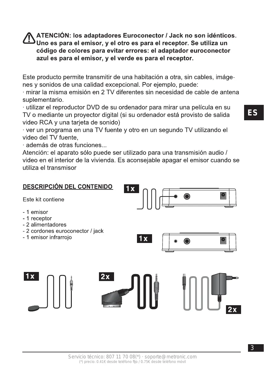 Servicio técnico: 807 11 70 08(*) · soporte@metronic.com (*) precio: 0.41€ desde teléfono fijo / 0.75€ desde teléfono móvil