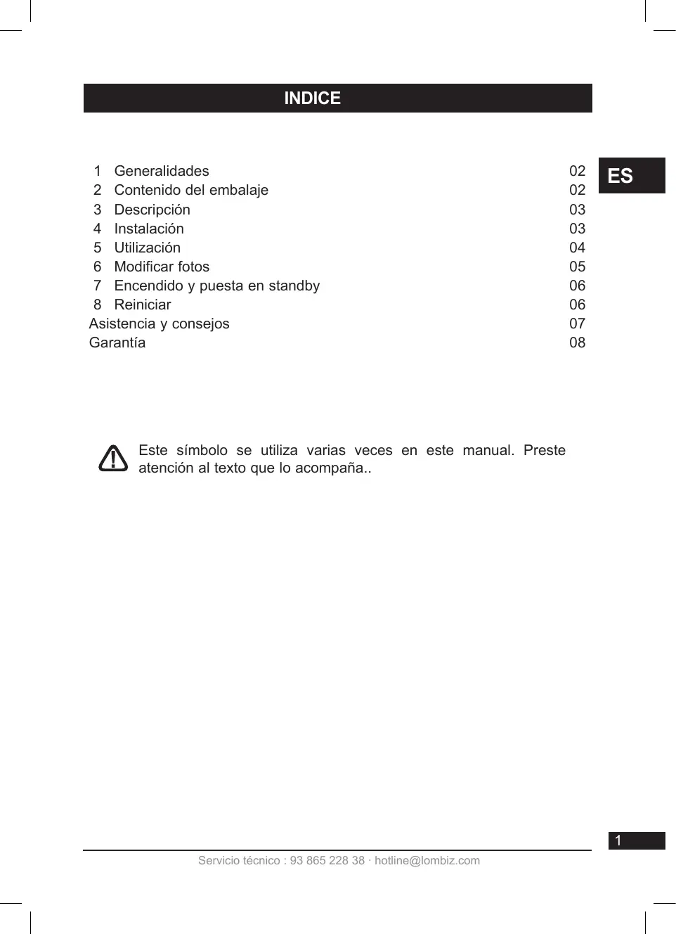 Le bon fonctionnement de l’appareil sous-entend une utilisation conforme à cette notice. Aucune fonction présente dans l’appareil, mais non décrite dans cette notice ne présente de garantie. Aussi, certaines fonctions considérées comme non essentielles ont volontairement été occultées dans ce document. Ce cadre photo numérique est compatible avec les formats de cartes MMC (Multi Media Card), SD (Secure Digital), MS (Memory Stick). Conformément aux obligations faites par le respect de la norme EN 60065, nous attirons votre attention sur les éléments de sécurité suivants. Il convient de ne pas obstruer les ouvertures d’aération avec des objets tels que journaux, nappes, rideaux, etc. Une distance minimale de 5 cm est requise autour de l’appareil pour assurer une aération suffisante. Il convient de ne pas placer sur l’appareil, ou à proximité, des sources de flammes nues telles que des bougies allumées. L’appareil ne doit pas être exposé à des égouttements d’eau ou des éclaboussures et de plus, aucun objet rempli de liquide tel que des vases ne doit être placé sur l’appareil. Lorsque la prise d’alimentation est utilisée comme dispositif de déconnexion, ce dispositif doit demeurer aisément accessible.