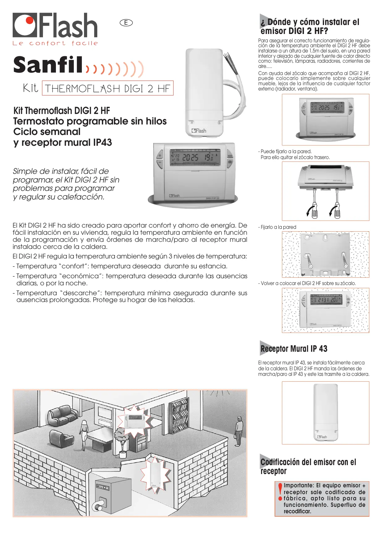 A l'aide du socle fourni avec le DIGI 2 HF, vous pouvez le poser smplement sur un meuble en veilant à ce que aucun facteur exteme ne l'influence (radiateur, fenêtre, téléphone portable...)