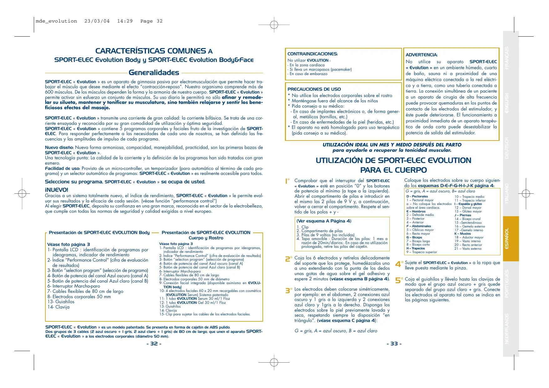Presentación de SPORT-ELEC EVOLUTION Cuerpo y Rostro Véase foto página 3