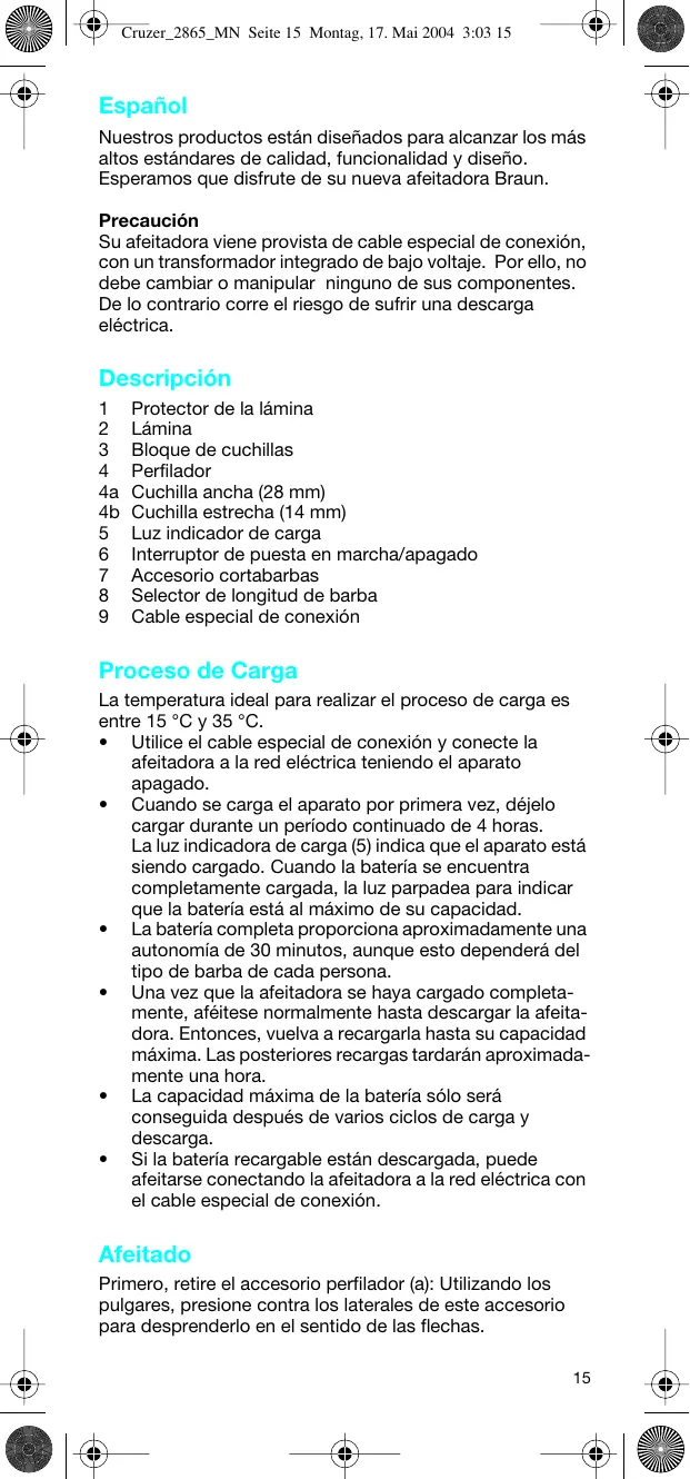 Encuentra gratis el manual del aparato CRUZER3 2878 BRAUN en formato PDF.