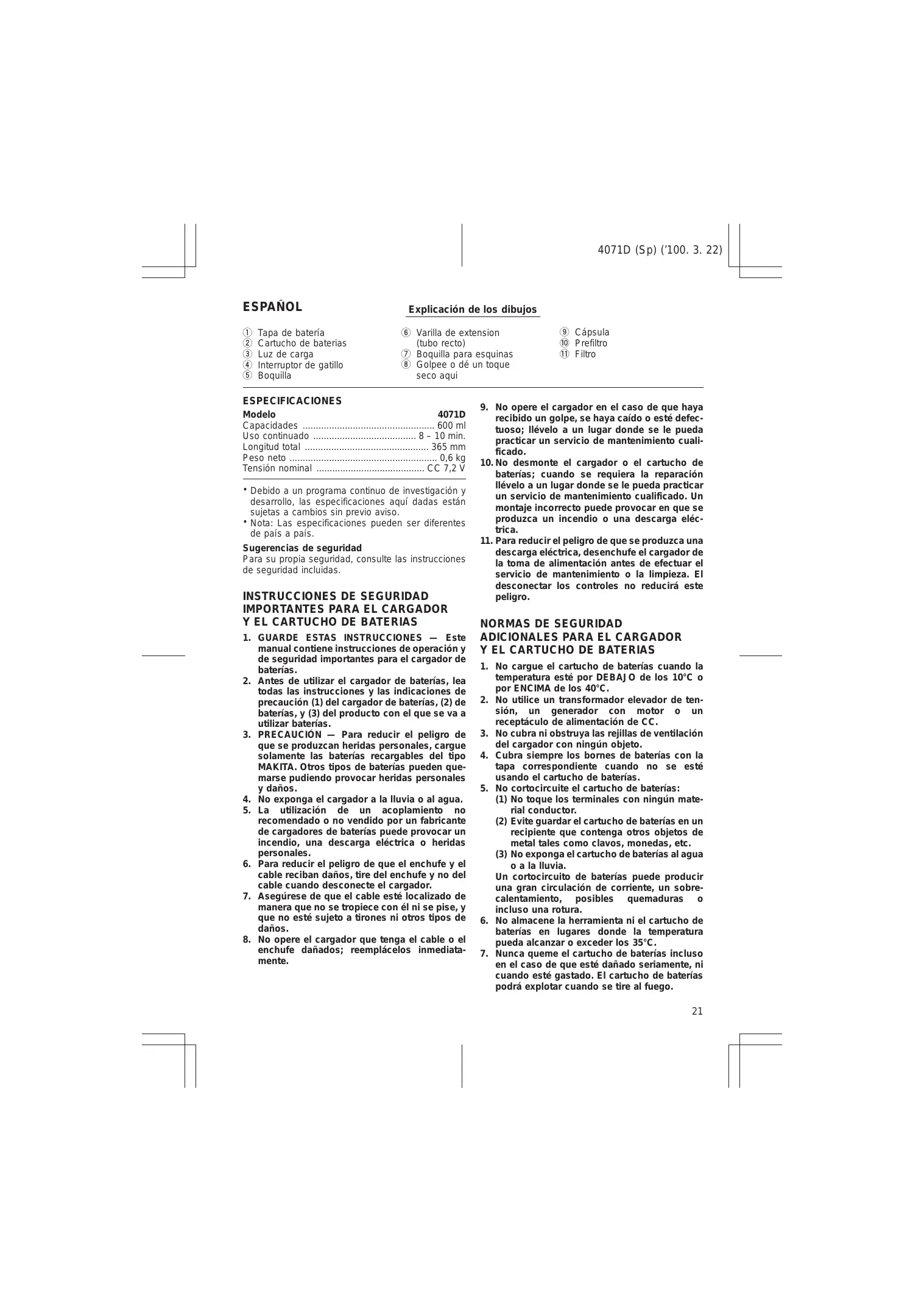 4071D - Taladro inalámbrico MAKITA - Manual de uso y guía de instrucciones gratis