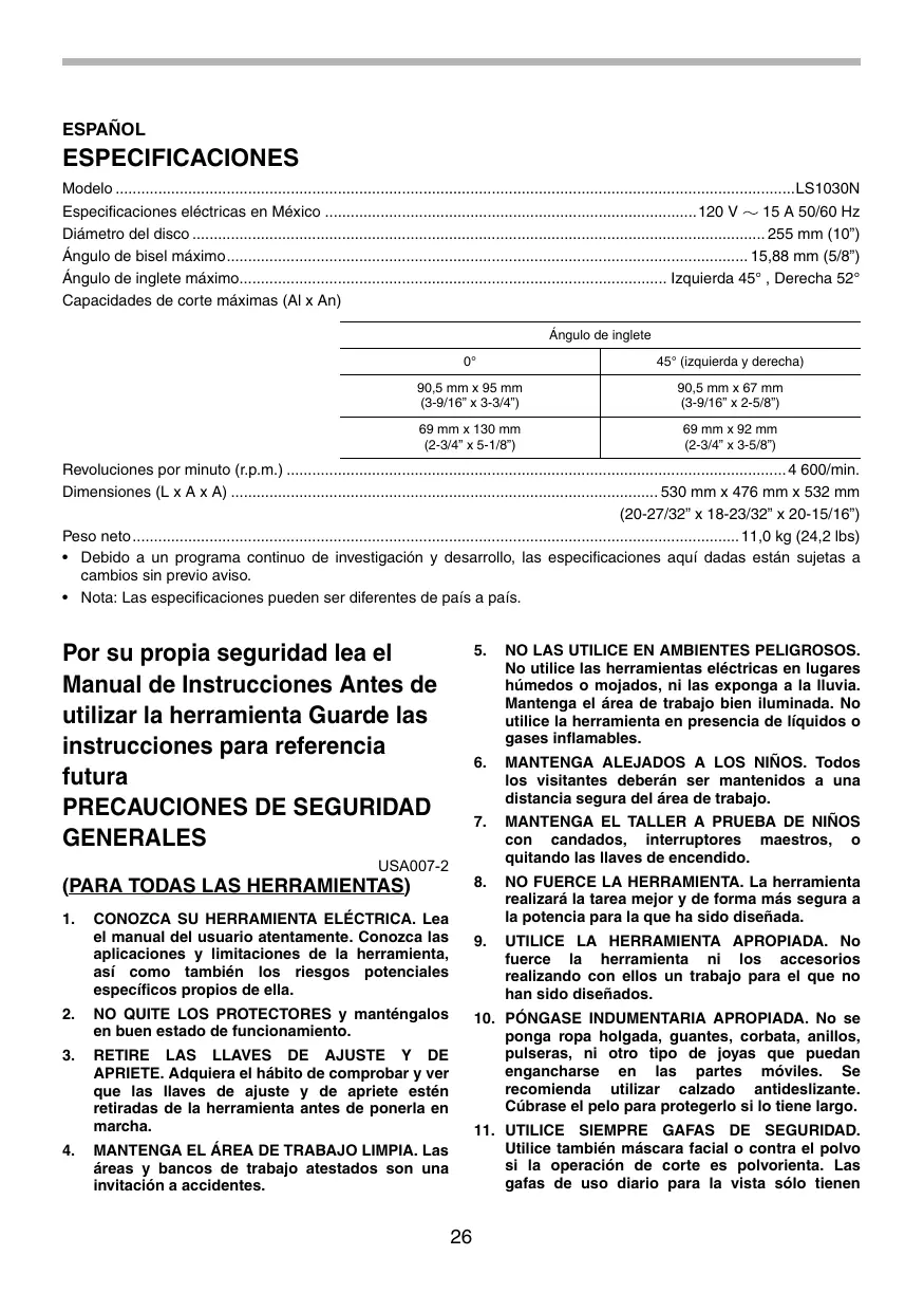 LS1030N - Sierra ingletadora MAKITA - Manual de uso y guía de instrucciones gratis