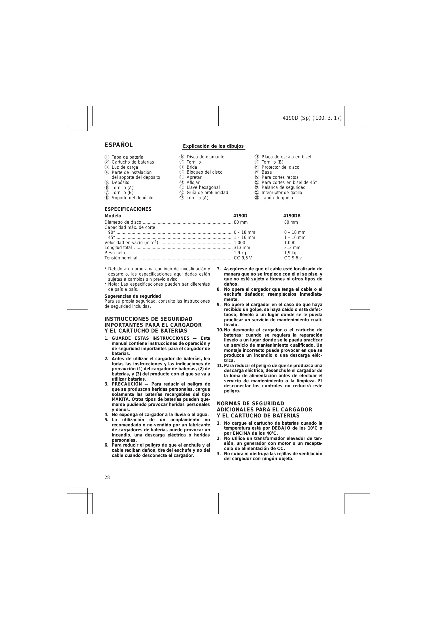 Encuentra gratis el manual del aparato 4190D MAKITA en formato PDF.