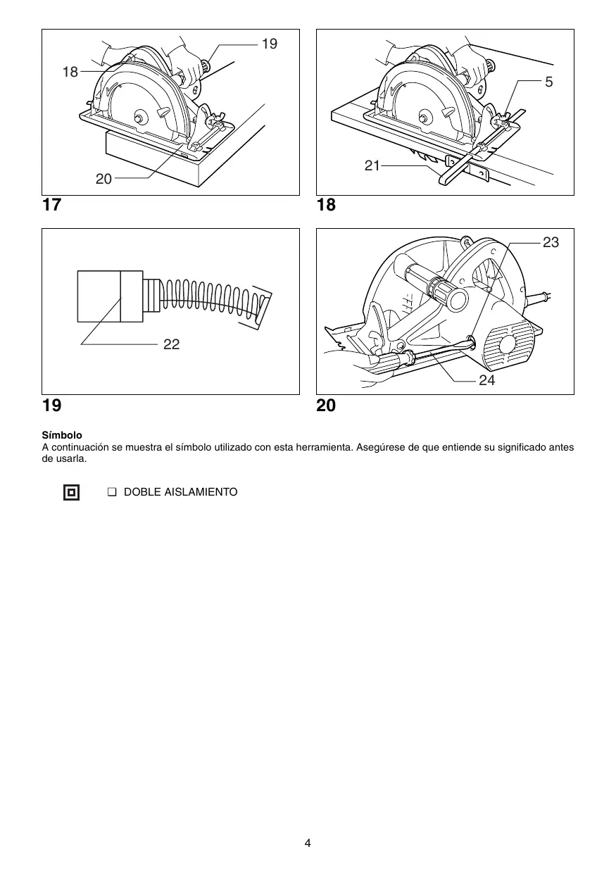 17. No intente nunca serrar con la sierra circular