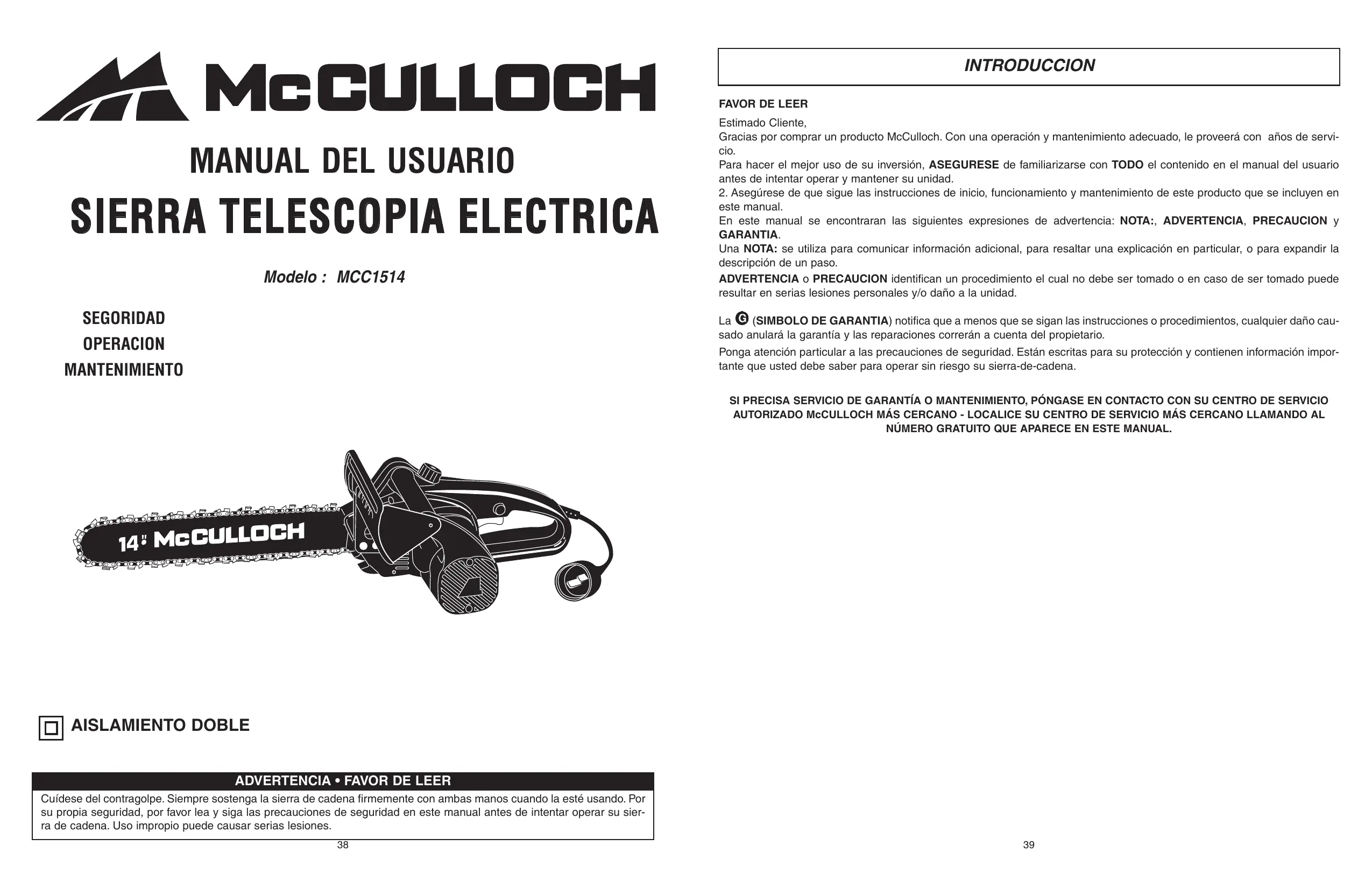 MANUAL DE USUARIO MCC1514 MCCULLOCH
