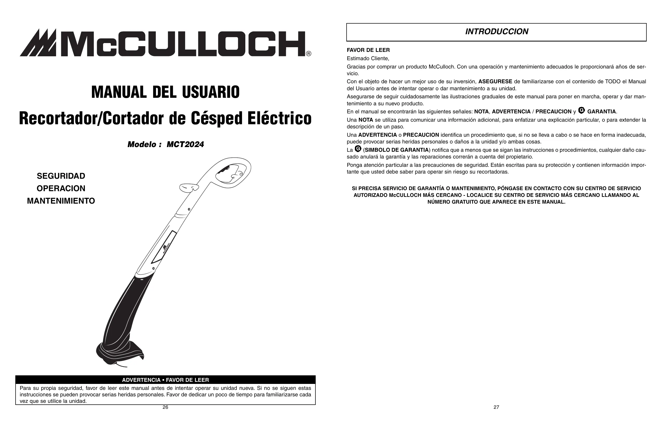 MCT2024 - Cortadora de césped eléctrica MCCULLOCH - Manual de uso y guía de instrucciones gratis