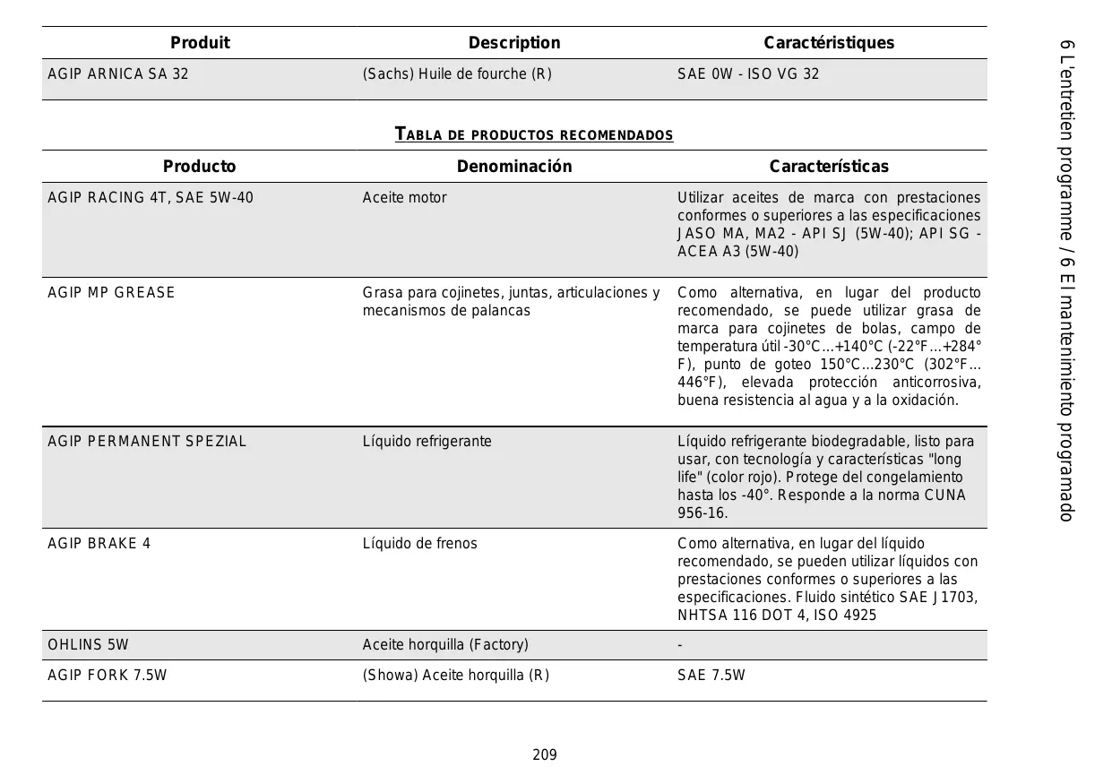 El funcionamiento del sistema immobilizer.… Carenados... Contrôle du jeu de la chaîne Réglage du jeu de la chaîne. Contrôle de l'usure de la chaîne, du pignon et de la couronne