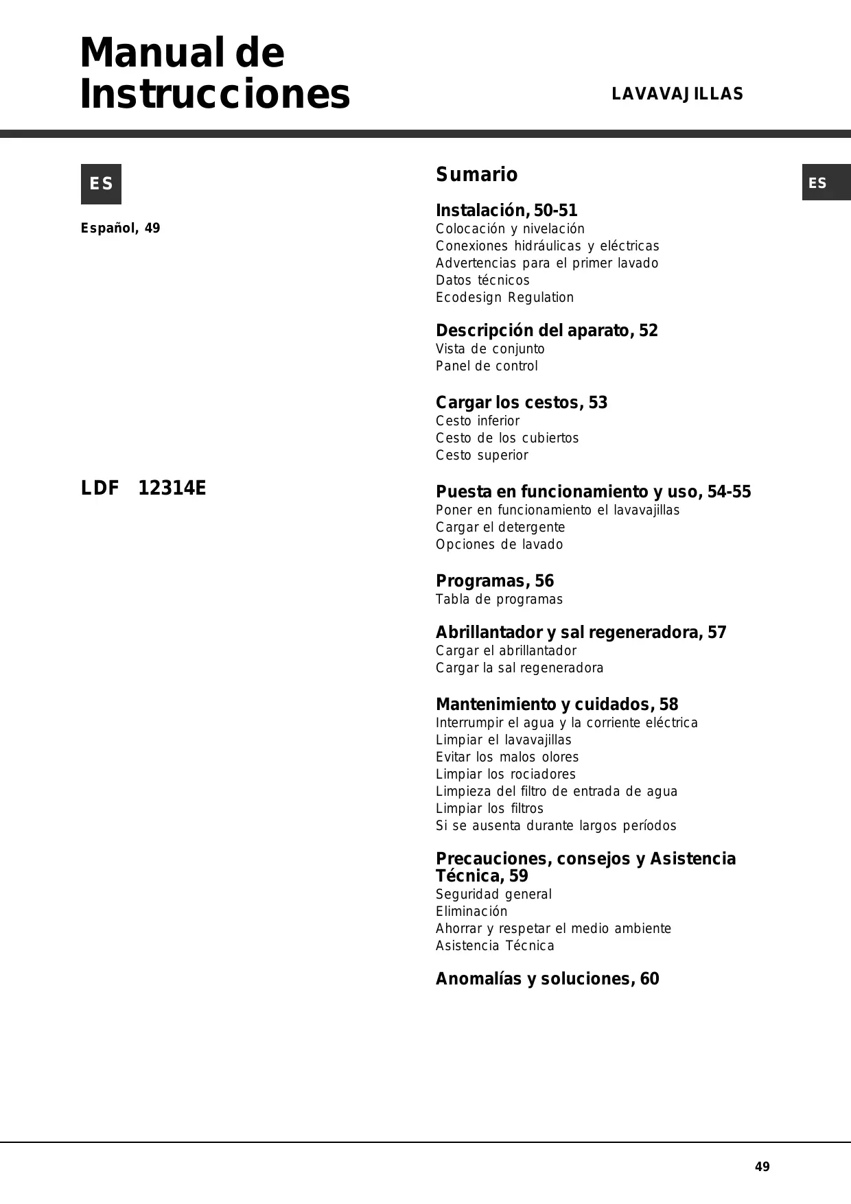 LDF 12314, LDF12314EEU - Lavavajillas HOTPOINT-ARISTON - Manual de uso y guía de instrucciones gratis