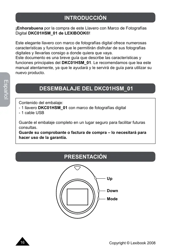 jEnhorabuena por la compra de este Llavero con Marco de Fotografias Digital DKC01HSM_01 de LEXIBOOK®!
