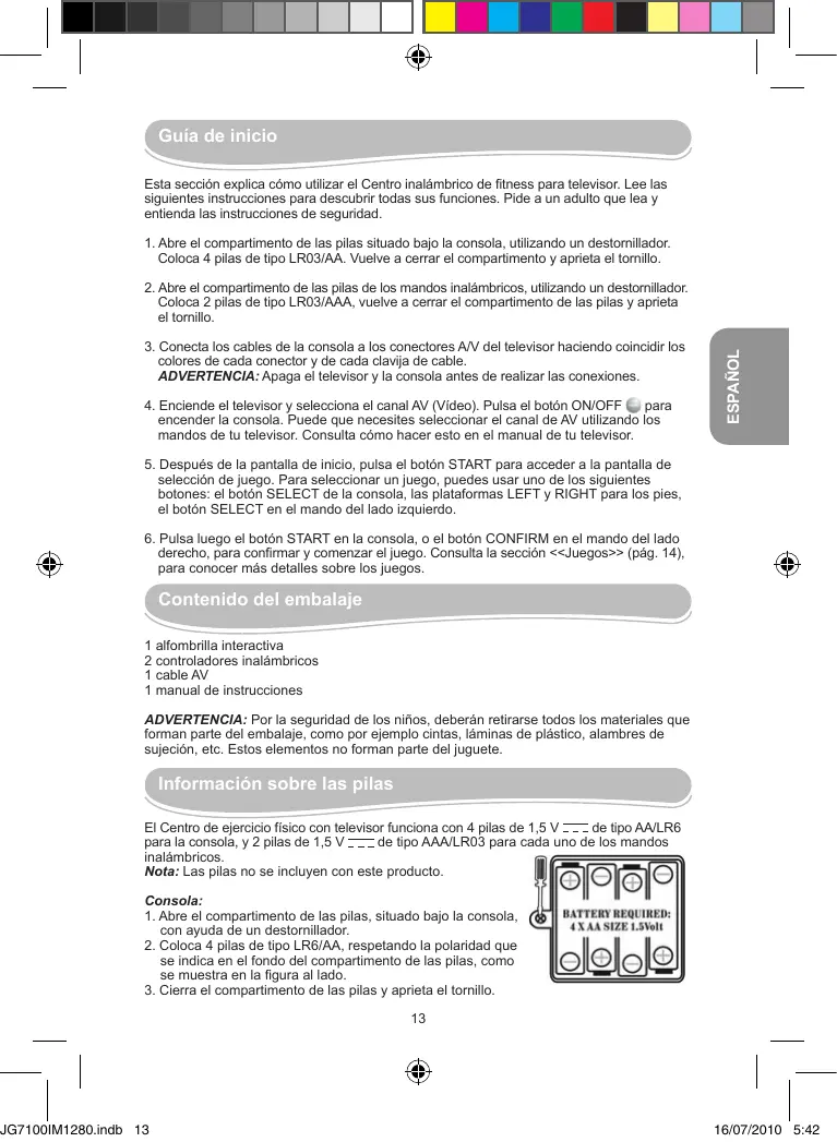 Esta sección explicía como usar el Centro inalámbrico de fitness para teóvisor. Lee lasSIGentes instructiones para descrir todas sus sistemas. Pide a un adulto que lea yentianda las instructiones de seguidar.