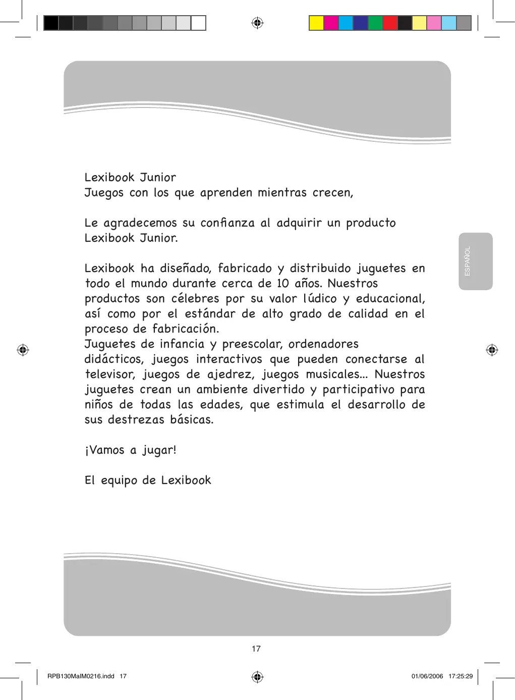ESPAÑOL Le agradecemos su confianza al adquirir un producto Lexibook Junior.