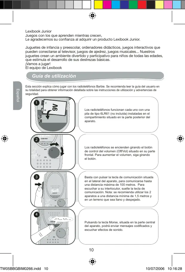 Esta sección explica cómo jugar con los radioteléfonos Barbie. Se recomienda leer la guía del usuario en su totalidad para obtener información detallada sobre las instrucciones de utilización y advertencias de seguridad.