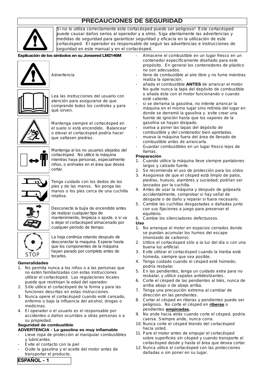 MANUAL DE USUARIO LM 2146 M JONSERED