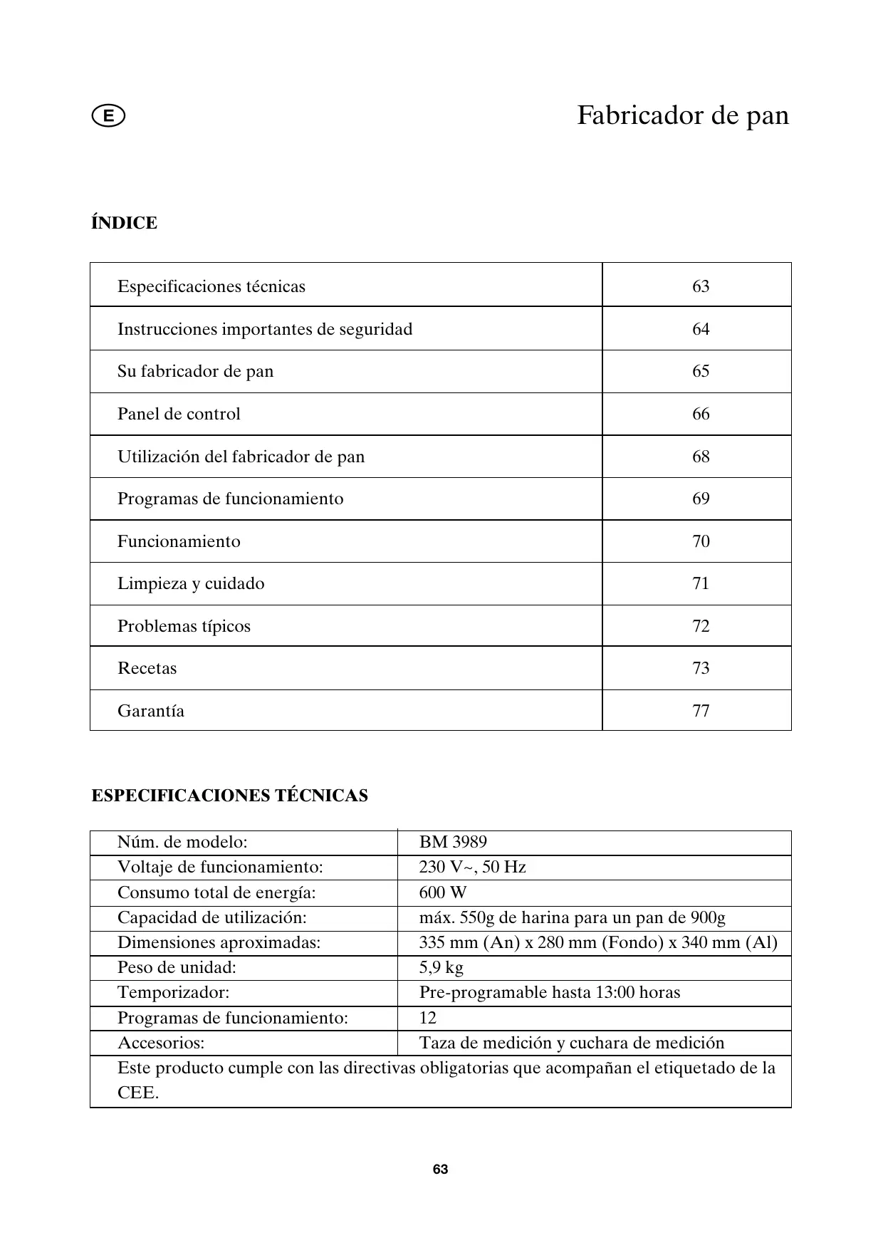 | Su fabricador de pan | 65 |