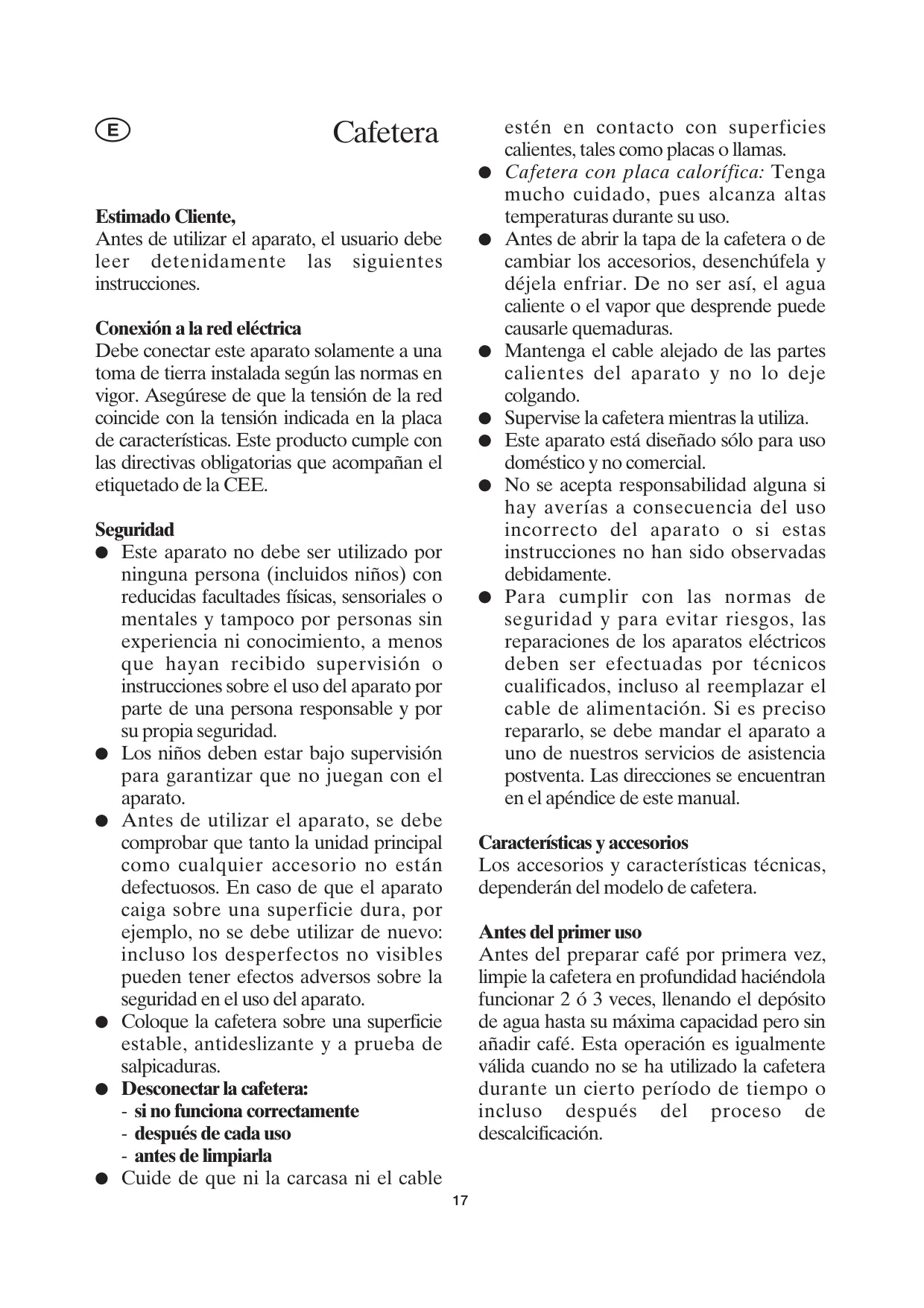 E Cafetera Estimado Cliente,