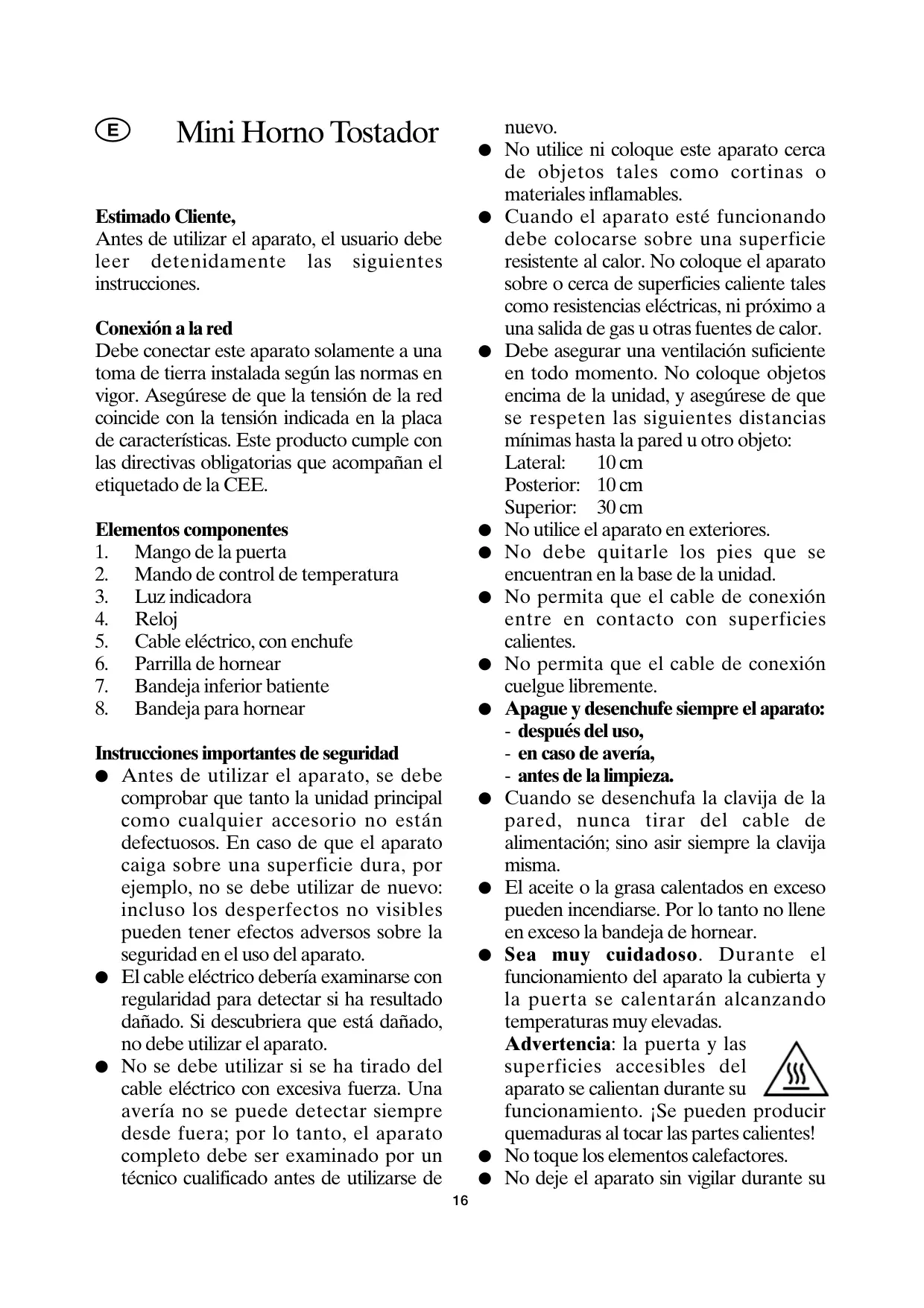 - Sea muy@cuidadoso. Durante el funciona del aparato la cubierta y la puerta se calculará alcantando temperatas muy elevadas.
