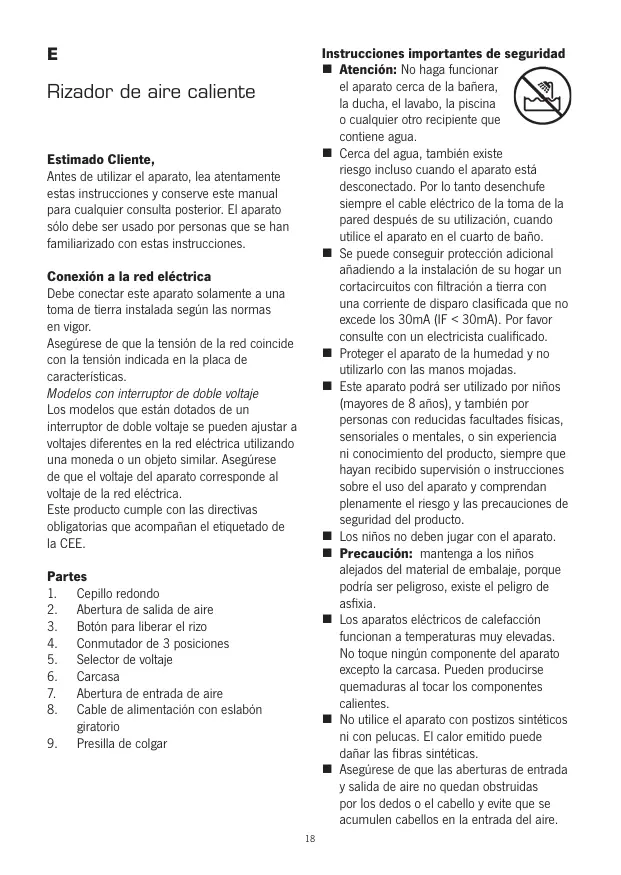 - Cuando el aparato se desconnecte automatistically durante su'utilisation, se habraktivado el dispositivo interno de proteccion contra sobrecalentamento. El aparato se encenderde como nuevo afterwards de un periodo de enfiambre.