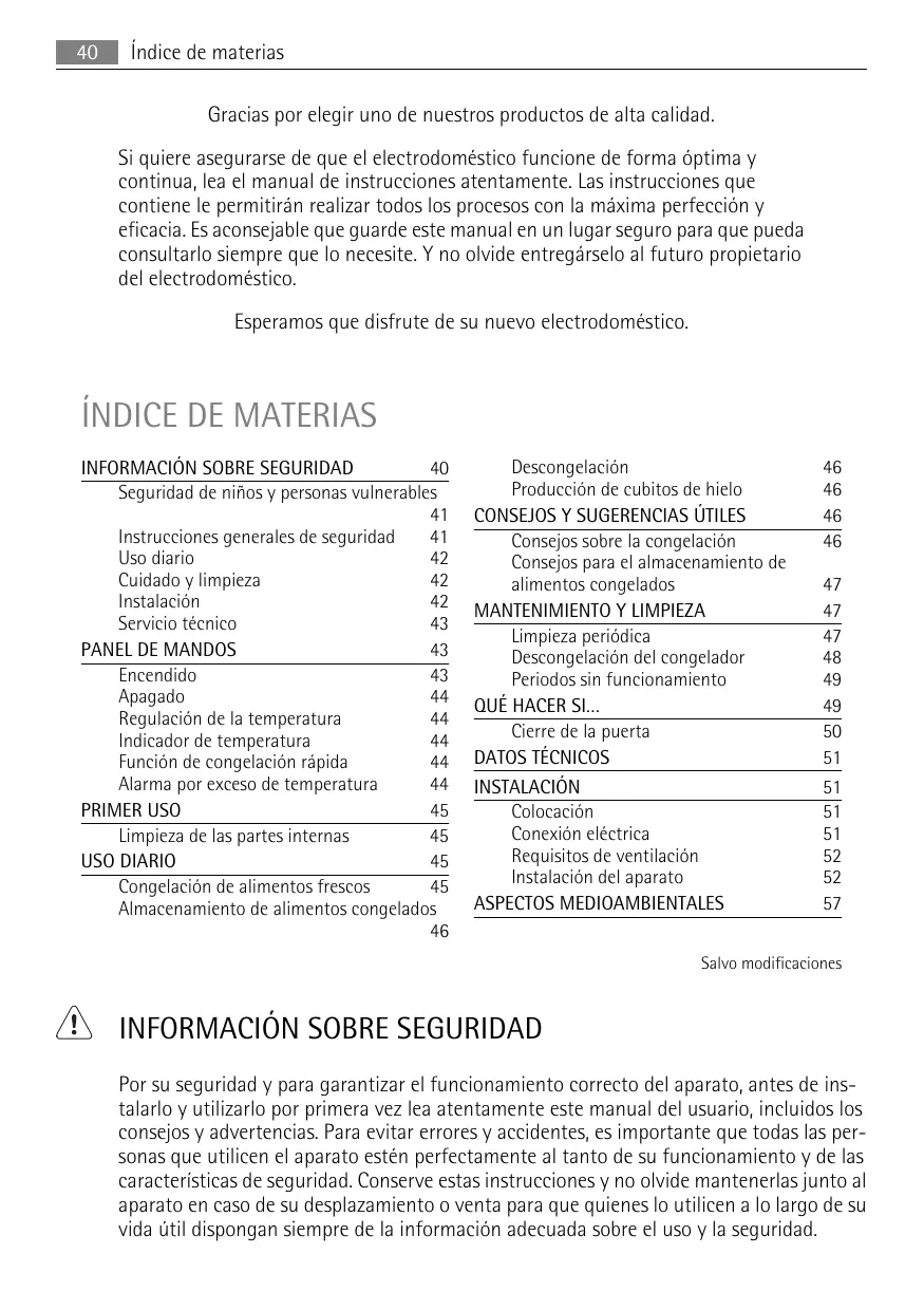 Por su seguridad y para garantizar el funcionamiento correcto del aparato, antes de instalarlo y utilizarlo por primera vez lea atentamente este manual del usuario, incluidos los consejos y advertencias. Para evitar errores y accidentes, es importante que todas las personas que utilicen el aparato estén perfectamente al tanto de su funcionamiento y de las características de seguridad. Conserve estas instrucciones y no olvide mantenerlas junto al aparato en caso de su desplazamiento o venta para que quienes lo utilicen a lo largo de su vida útil dispongan siempre de la información adecuada sobre el uso y la seguridad. Información sobre seguridad