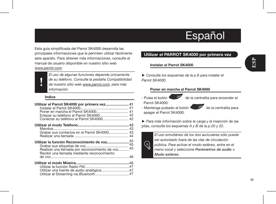 MANUAL DE USUARIO SK4000 PARROT