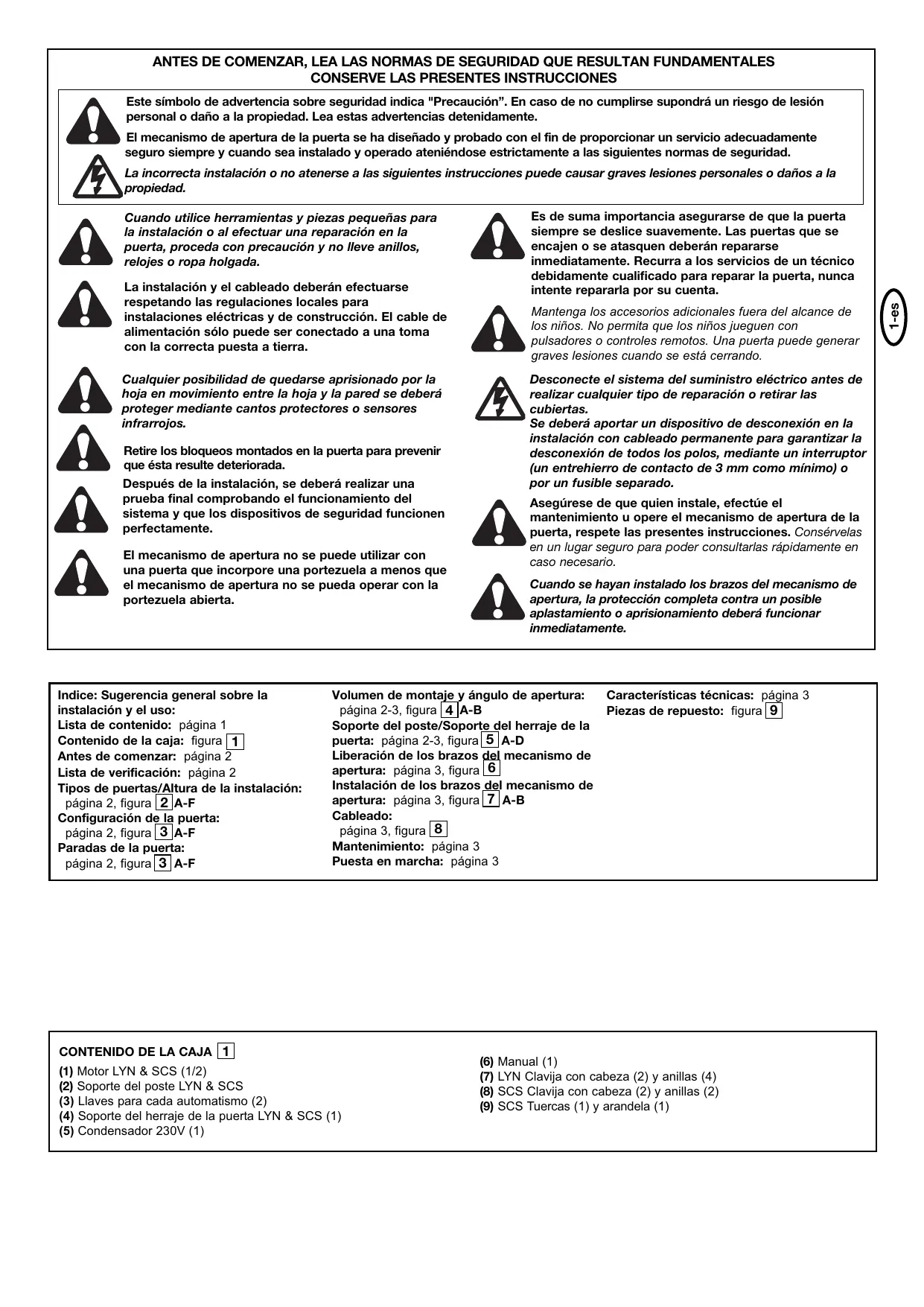 página 2, figura 3 A-F Cuando se hayan instalado los brazos del mecanismo de apertura, la protección completa contra un posible aplastamiento o aprisionamiento deberá funcionar inmediatamente.