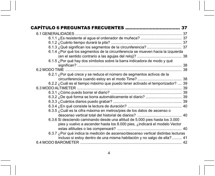 6.1.1 ¿Es resistente al agua el ordenador de muñeca? ....................................... 37