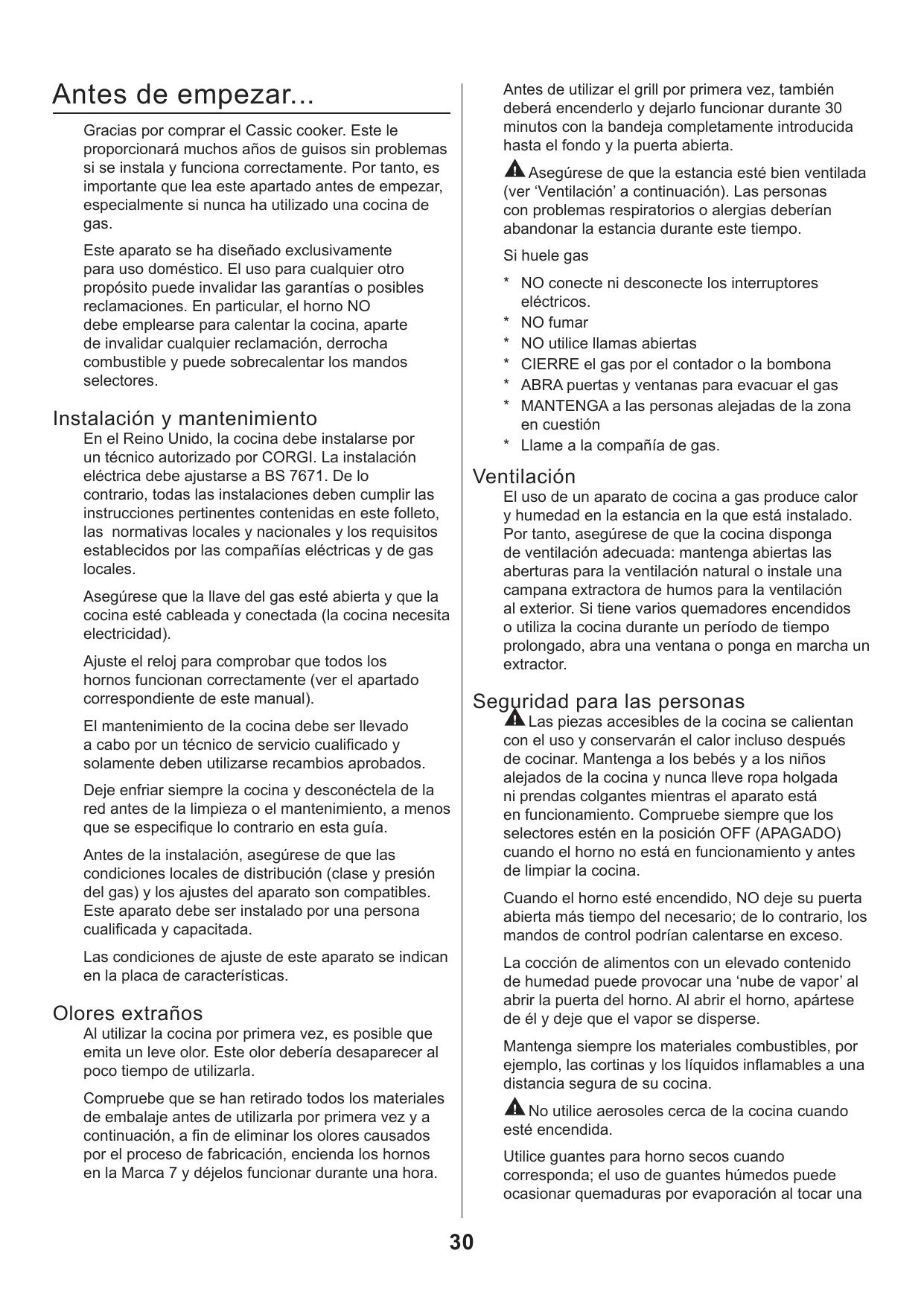 Gracias por comprar el Cassic cooker. Este le proporcionará muchos años de guisos sin problemas si se instala y funciona correctamente. Por tanto, es importante que lea este apartado antes de empezar, especialmente si nunca ha utilizado una cocina de gas.
