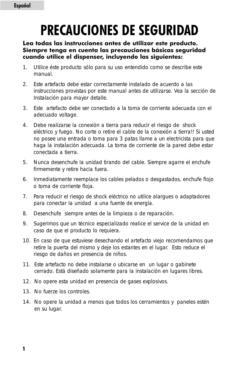 Lea todas las instrucciones antes de utilizar este producto. Siempre tenga en cuenta las precauciones básicas seguridad cuando utilice el dispenser, incluyendo las siguientes: