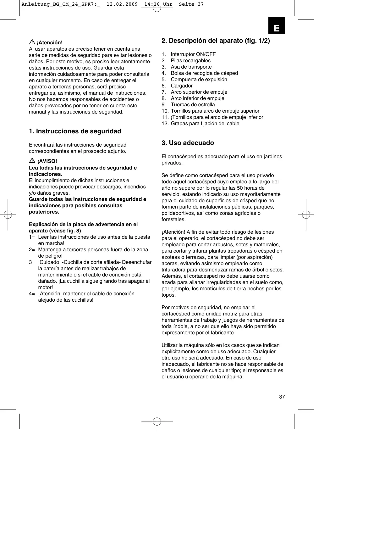 Encuentra gratis el manual del aparato BG-CM 24 EINHELL en formato PDF.