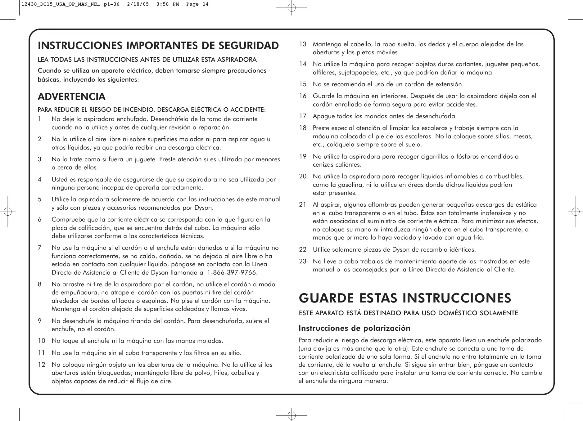 DC15 - Aspiradora DYSON - Manual de uso y guía de instrucciones gratis