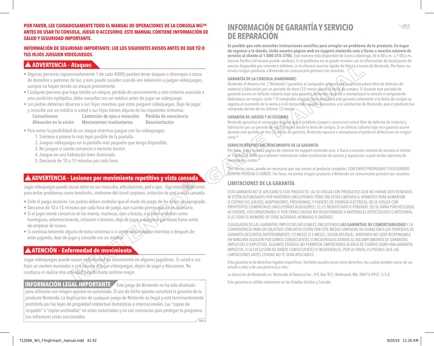 POR FAVOR, LEE CUIDADOSAMENTETodo EL MANUAL DE OPERaciones DE LA CONSOLA Wii™ ANTES DE USART TU CONSOLA, JUEGO O ACCESORIO. ESTE MANUAL CONTIENE INFORMACION DE SALUD Y SEGURIDAD IMPORTANTE.