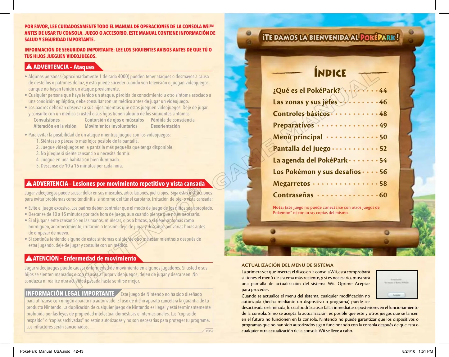 MANUAL DE USUARIO WII POKEPARK NINTENDO