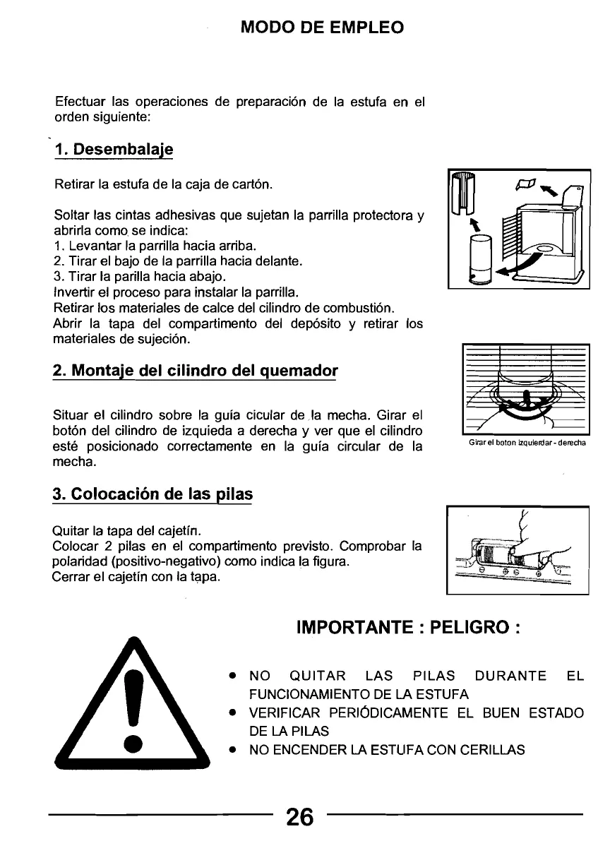 MODO DE EMPLEO Efectuar las operaciones de preparacién de la estufa en el orden siguiente: