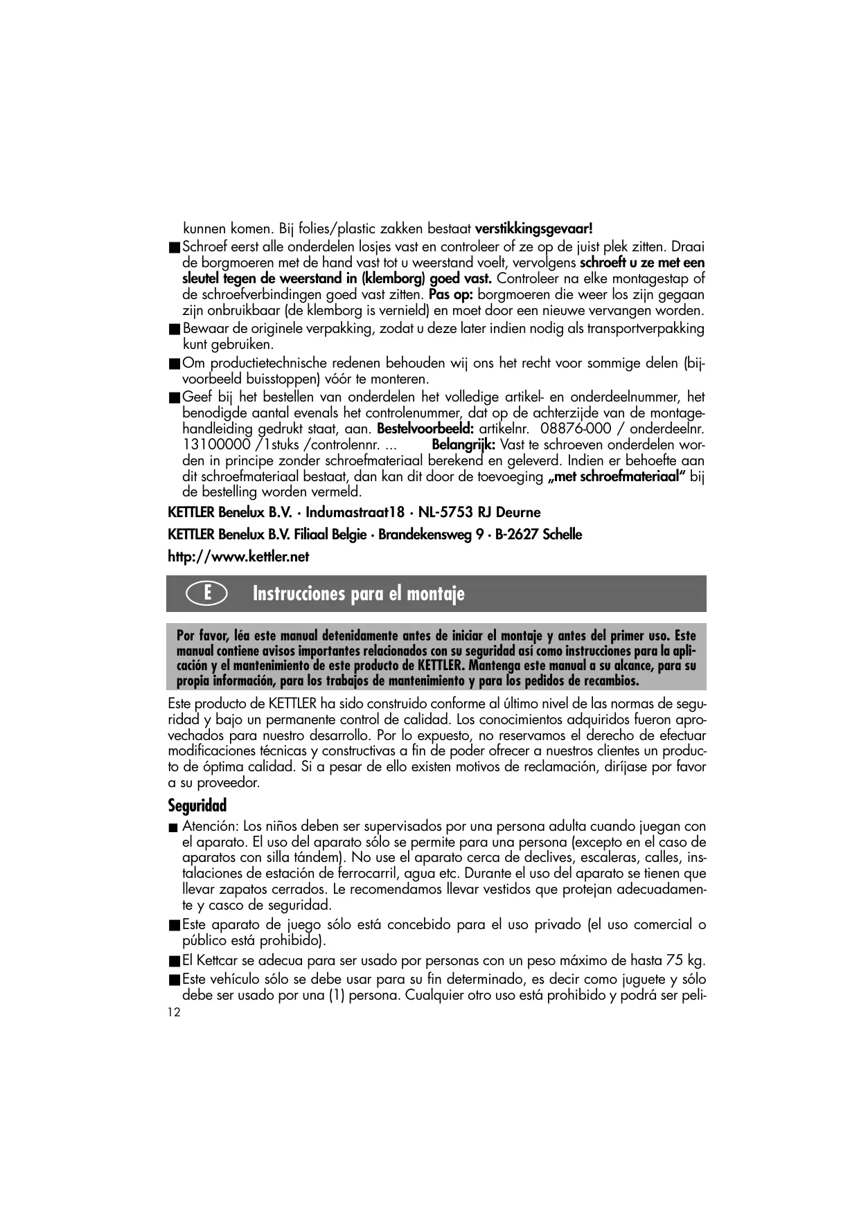 Este producto de KETTLER ha sido construido conforme al ültimo nivel de las normas de segu-