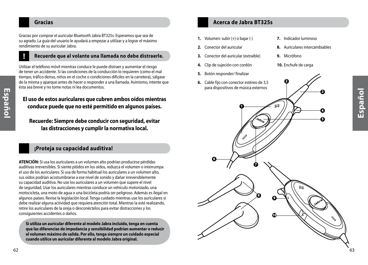 Gracias por comprar el auricular Bluetooth Jabra BT325s. Esperamos que sea de su agrado. La guía del usuario le ayudará a empezar a utilizar y a lograr el máximo rendimiento de su auricular Jabra.
