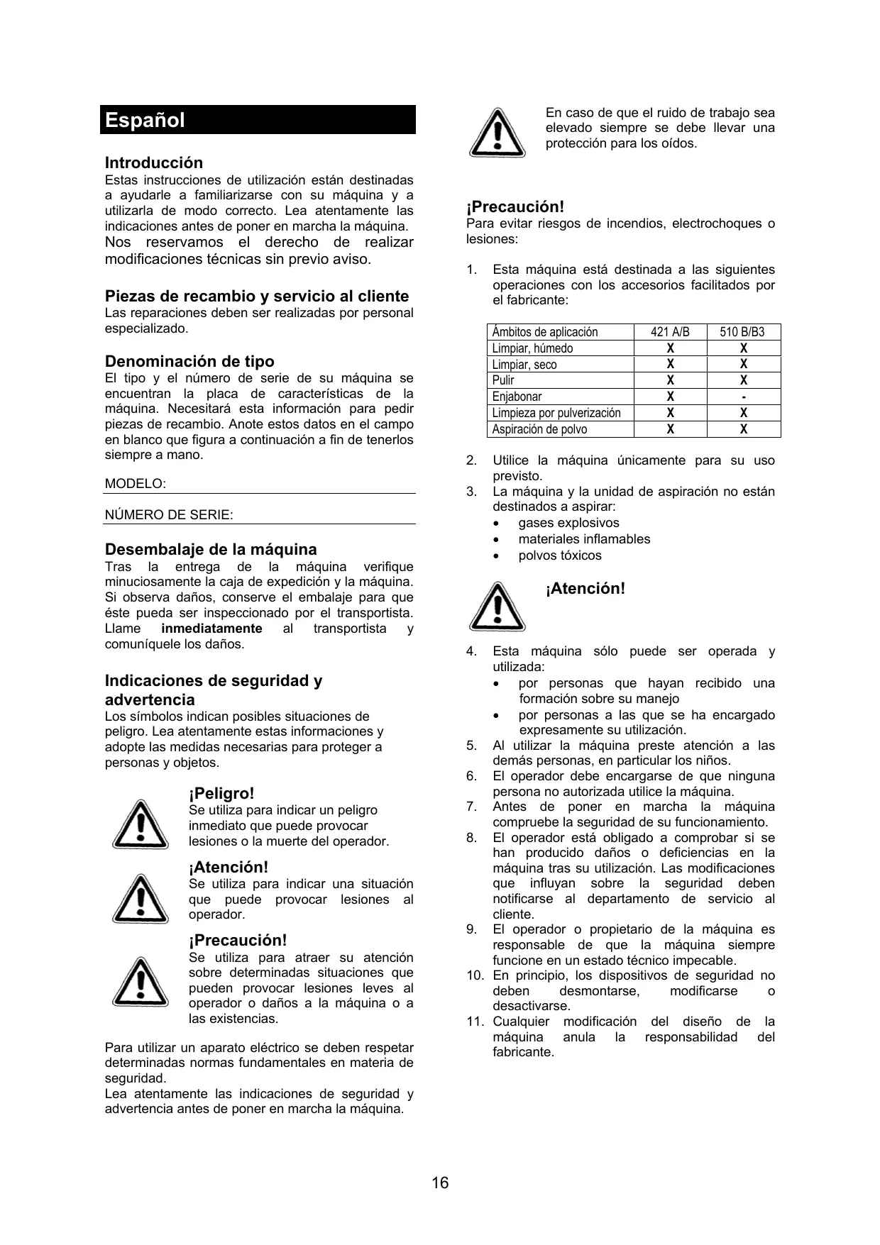 MANUAL DE USUARIO 421 A-B-510 B NILFISK