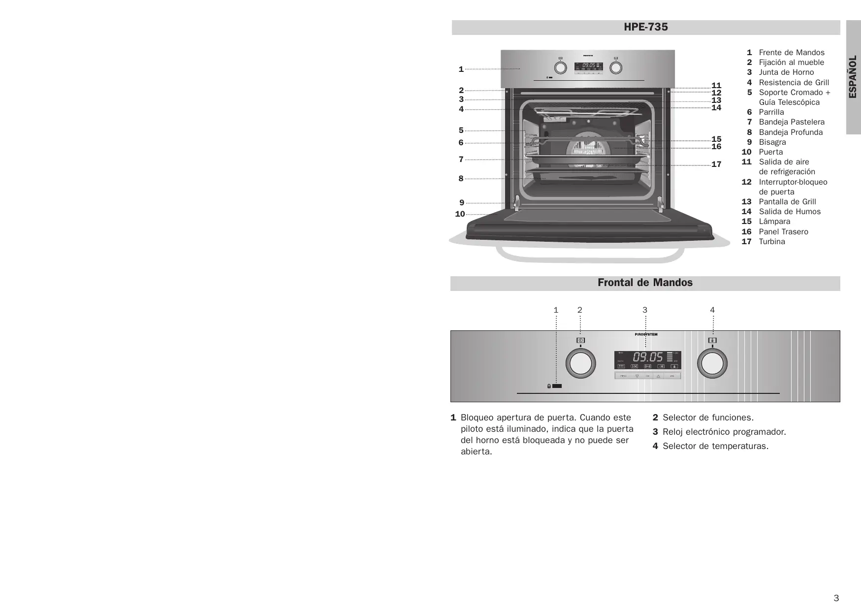 3 Reloj electrónico programador. 4 Selector de temperaturas.