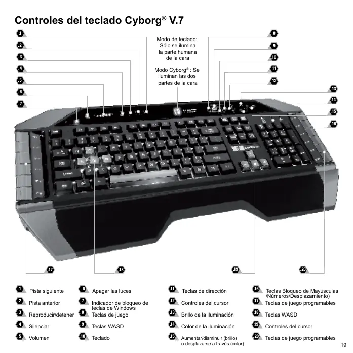 Enhorabuena por comprar el teclado Cyborg® V7.Además de ser una herramienta de oficina de alto rendimiento, el teclado Cyborg® ha sido diseñado específicamente para juegos e incluye las siguientes características: