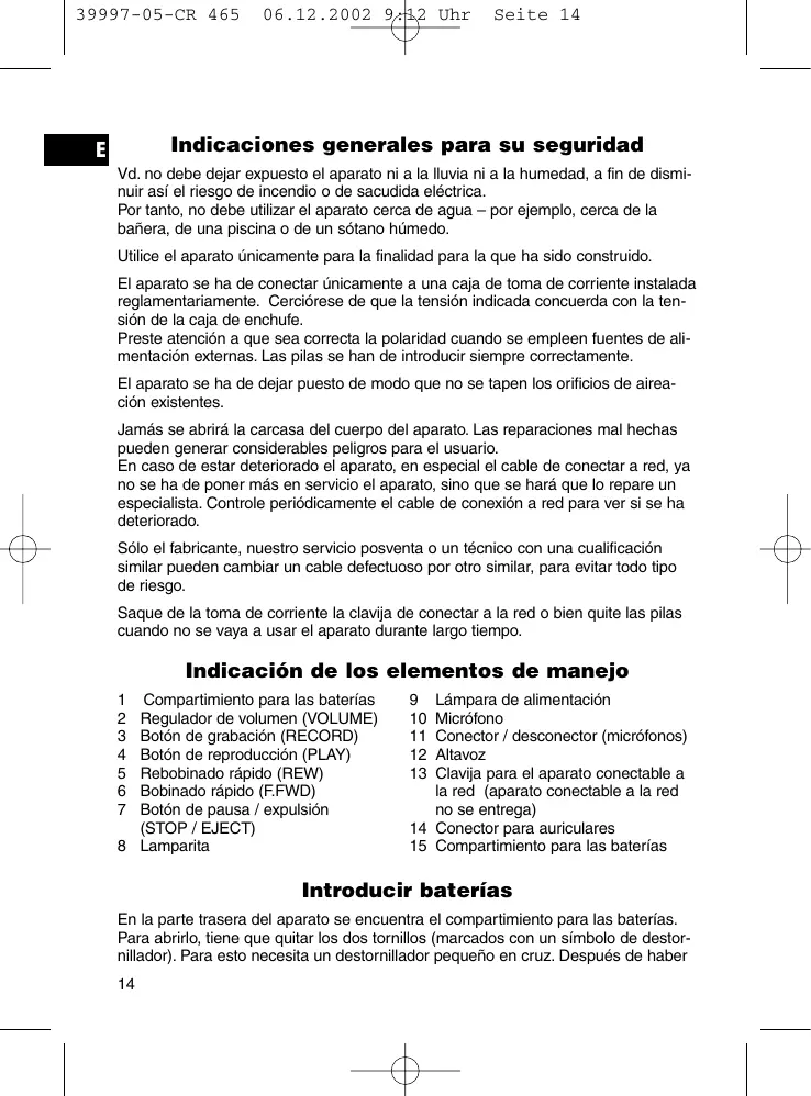 Encuentra gratis el manual del aparato CR 465 CLATRONIC en formato PDF.